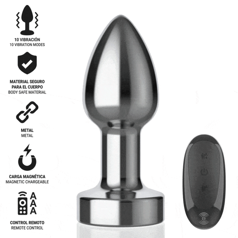 The INTENSE size S vibrating anal plug is the perfect accessory for those looking to explore and enjoy new sensations safely, comfortably, and discreetly. This elegant plug is made of high-quality aluminum, which not only gives it a sophisticated aesthetic but also guarantees long-lasting durability and a cool or warm sensation, ideal for those who enjoy stimulation through temperature changes.